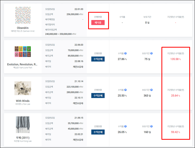하지만, 하이리스크 하이리턴이라고 했습니다. 아트테크의 단점으로 장점을 가리기에는 수익률이 너무 높습니다.