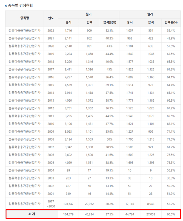 2. 컴퓨터응용가공산업기사 합격률 알아보기