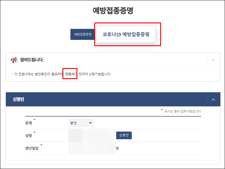 격리 통지서를 발급받고 나니 예방접종증명서도 발급이 필요했습니다.